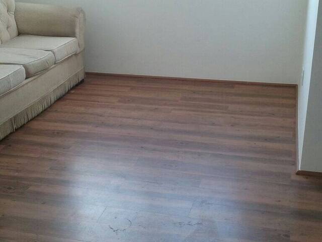 * Sala ampla para dois ambientes confortáveis, piso laminado em tom de madeira clara e grande janela